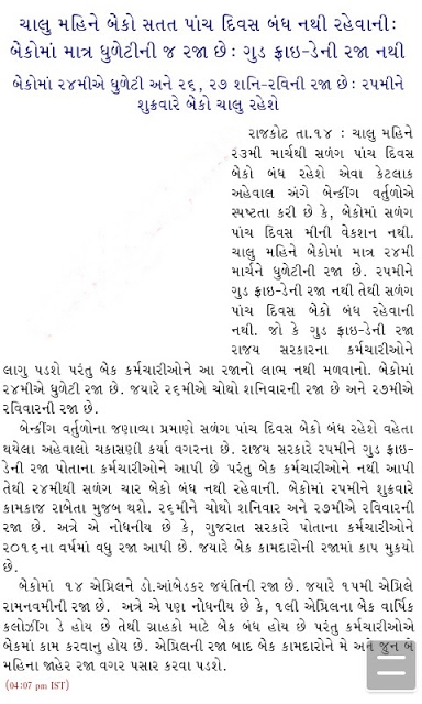बैंकों मां सतत पांच दिवस रजा नथी ।वांचो आ न्यूज़ रिपोर्ट। गुड फ्राइडे ए बेंक चालू रहेशे।